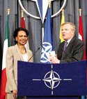: RICE WARNS IRAN: US Secretary of State Condoleezza Rice yesterday urged European negotiators to take a tough line with Iran, warning Tehran of sanctions if it refuses to renounce its suspected nuclear weapons program. "I think a diplomatic solution is in our grasp if we have unity of message and unity of purpose," she said, after meeting her NATO counterparts. Read More... |