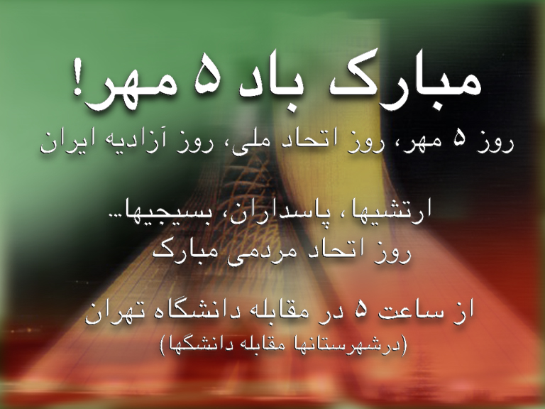 اول مهرماه 2565 (سال پاسارگاد) ـ بيست و سوم سپتامبر2006